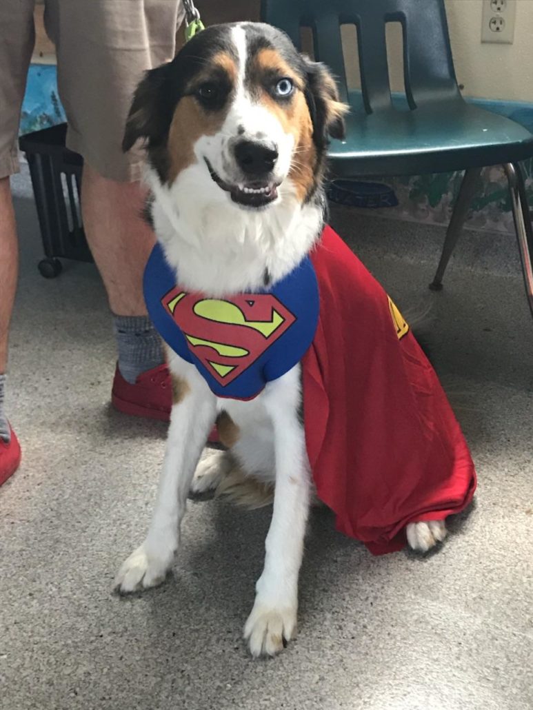 Sam came to Kids and Canines in March 2017 with his sister Lucy. These two stole the hearts of staff and kids alike. Their unusual eye color (one brown and one blue) often made the younger children in our Furry Tales Program (reading program for elementary students) seek them out as reading buddies.